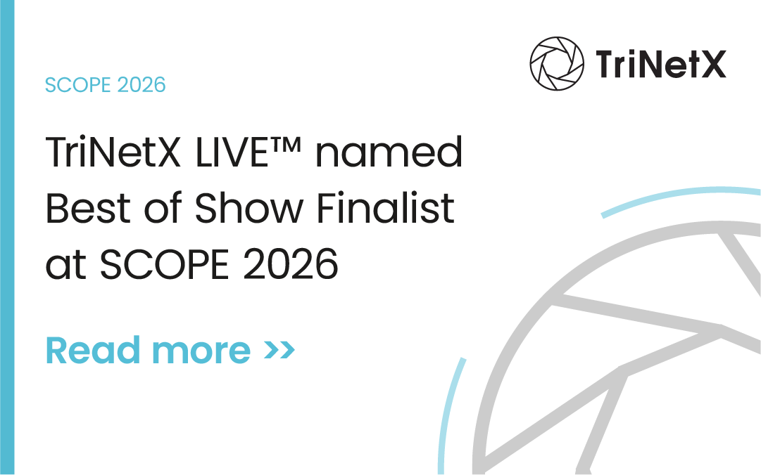 TriNetX is proud to announce that we were named a Best of Show Finalist at SCOPE, the summit for clinical ops executives, one of the industry’s premier events focused on advancing clinical operations and innovation. This recognition highlights our continued commitment to transforming how life sciences organizations plan, design, and execute clinical trials through data-driven intelligence.